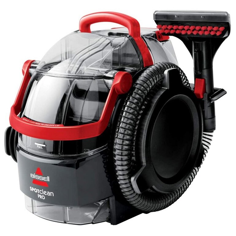 Máy giặt thảm Bissell SpotClean 1558N sẽ loại bỏ vĩnh viễn các vết bẩn trên thảm, vật dụng vải bằng cách sử dụng nước, công thức Bissell và dụng cụ làm sạch cầm tay với lực hút mạnh.