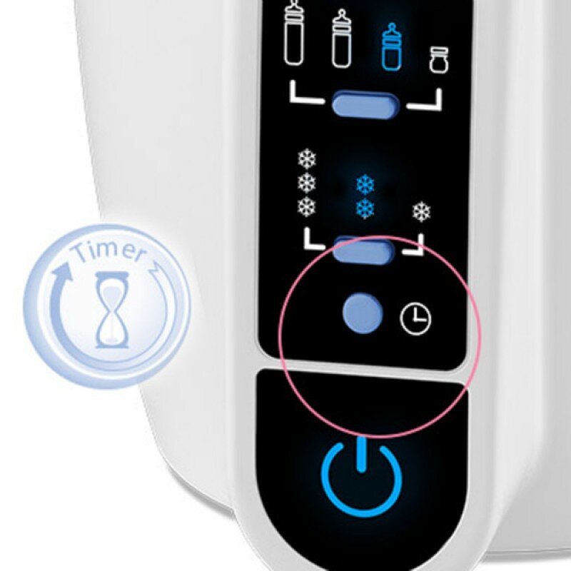 - Chức năng hẹn giờ tiện dụng: Mẹ vừa có thể chủ động chuẩn bị sẵn sữa và thức ăn vừa có nhiều thời gian hơn để chăm sóc Bé hoặc làm các công việc khác.