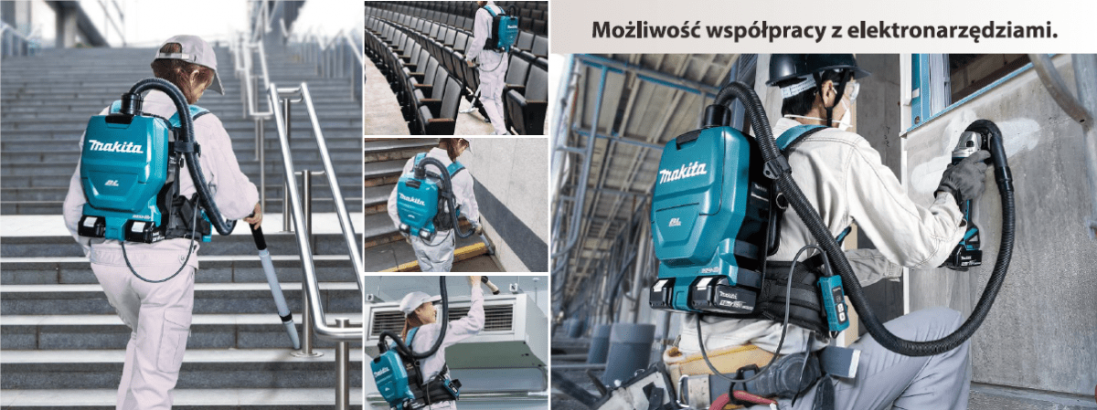 Máy hút bụi đeo vai dùng pin MAKITA DVC260Z (18V) - Không cùng pin Được cung cấp bởi hai pin Li-ion 18V trong loạt để cung cấp năng lượng cho hệ thống động cơ Makita DC 36V mạnh mẽ. Với thời gian chạy 1 giờ ở chế độ cao với 2 x 5.0Ah cho 45W công suất hút nhờ động cơ không rê có hiệu suất cao. Makita DVC260 có dây nịt được bọc bằng nylon được thiết kế tốt, cho phép bạn di chuyển toàn bộ và hỗ trợ máy hút bụi đến mức bạn hầu như không nhận thấy rằng bạn đang mặc nó. Bộ điều khiển cầm tay có một kẹp để gắn vào dây nịt và cũng có đèn LED để nó có thể gấp đôi như ngọn đuốc. Bộ dây nịt cũng có một tay cầm cầm tay ở trên cùng để vận chuyển.