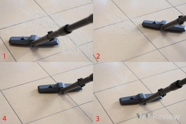 Kết quả hút bụi sàn cứng ở mức lực hút tối đa (theo thứ tự 1-4)