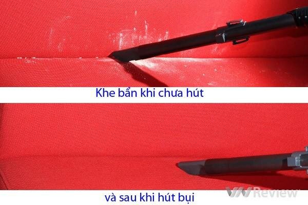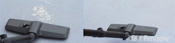 Chúng tôi đã thử nghiệm hút bụi trên cả sàn và thảm, hút khe ghế sô pha bằng Hitachi CV-SH20V. Chúng tôi chọn hai cách: rải bột (giả sử là bụi) và rải hạt gạo (rác có kích cỡ và trọng lượng lớn hơn) ra sàn sạch và thao tác hút bụi.