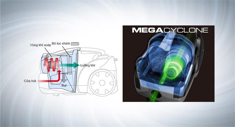 Máy hút bụi hộp Panasonic MC-CL575KN49 có công suất hút bền bỉ. Lốc xoáy ly tâm bụi và duy trì luồng khí vào bộ lọc.