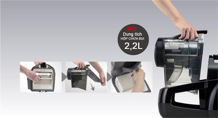 Hộp chứa bụi dễ tháo lắp, dung tích lớn