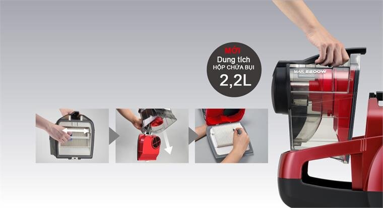 Hộp chứa bụi dễ tháo lắp, dung tích lớn