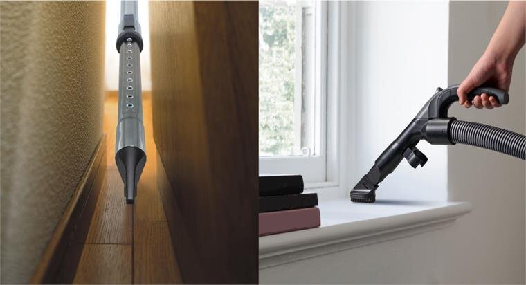 Sử dụng Đầu hút khe, bàn chải quét bụi cùng nhiều phụ kiện tiện lợi khác giúp làm sạch mọi ngóc ngách của căn phòng.