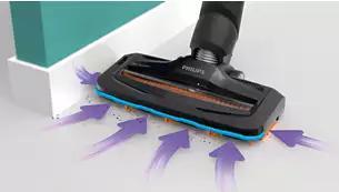 Động cơ PowerBlade được thiết kế cho tốc độ không khí cao, giúp hút mạnh và chính xác mọi bụi bẩn.