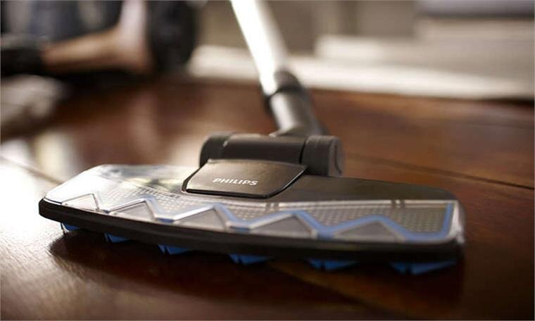Đầu hút TriActive để hút bụi lớn và mạnh vụn Đầu hút sàn cứng mới TriActive loại bỏ tất cả bụi và mảnh vụn trong một lần hút. Thiết kế hình chữ Z độc đáo đưa bụi và các mảnh vụn lớn hơn vào đường dẫn không khí mà không đẩy chúng về phía trước. Đường dẫn không khí ở hai bên hút sạch bụi dọc theo chân tường. Giờ thì không cần phải nâng đầu hút để loại bỏ các mảnh vụn lớn hơn nữa và đảm bảo chất lượng vệ sinh sàn cứng sạch sẽ, tuyệt vời.