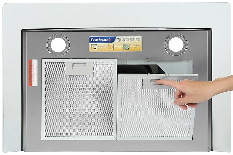 Máy hút mùi treo tường BlueStone HOB-8735 có màng lọc bằng hợp kim nhôm dày, bền với cầu nối 5 lớp đặc biệt chắc chắn, hiệu quả lọc vượt trội, tháo lắp đơn giản và dễ dàng vệ sinh. dễ dàng.