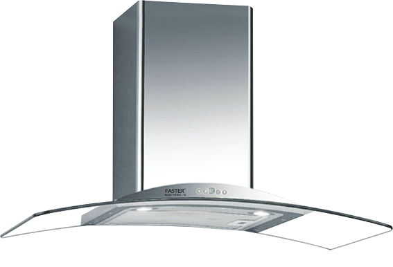 Máy hút mùi ống khói FASTER FS HE91-90 có thiết kế với kiểu dáng toa kính cong gắn tường sẽ giúp cho không gian bếp nhìn thoáng mát và sang trọng hơn so với các dòng cổ điển. Kích thước của máy là 900 mm phù hợp với không gian rộng, hoặc những căn hộ có cỡ bếp lớn hơn 700mm.Máy hoạt động bằng động cơ turbin đôi với công suất động cơ lên đến 170 w nên máy hoạt động khỏe. Công suất hút của máy rất lớn tới 1000m3/h đảm bảo mùi sẽ được hút triệt để và nhanh chóng.