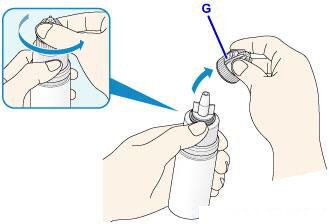 Bước 4: Xoáy nút đậy hộp mực theo ngược chiều kim đồng hồ và bỏ lắp ra như hình vẽ điểm G