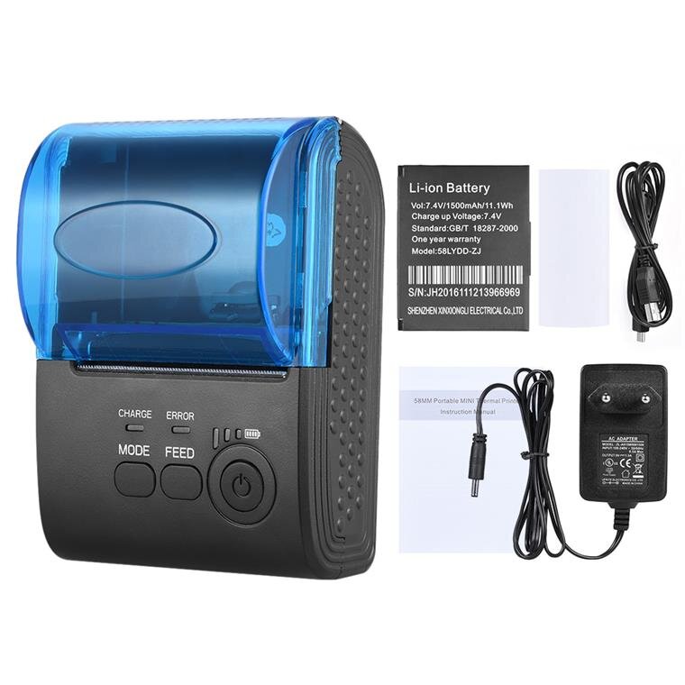 Máy in nhiệt cầm tay POS-5805DD được thiết kế với kích thước nhỏ gọn, vừa tiện lợi lại vừa hiện đại Máy in nhiệt cầm tay POS-5805DD được thiết kế với kích thước nhỏ gọn, vừa tiện lợi lại vừa hiện đại, thuận tiện cho người sử dụng có thể dễ dàng di chuyển đến bất cứ nơi nào cần thiết. Máy có tốc độ in tối đa là 90mm/giây, có độ phân giải 203 DPI (8dot/mm), tổng số chấm là 384 chấm/dòng. Với độ phân giải cao máy cho ra những bản in đẹp, rõ ràng, sắc nét cùng với tốc độ in nhanh máy giúp người dùng nâng cao hiệu suất làm việc, tiết kiệm thời gian. Đặc biệt không phải để khách hàng chờ lâu gây cảm giác khó chịu, tạo nên không gian làm việc chuyên nghiệp. Giấy và điện sử dụng cho máy Máy in nhiệt cầm tay POS – 5805DD sử dụng loại giấy cuộn có kích thước chiều rộng 58,0± 0.1mm, đường kính cuộn là <50mmm, độ dày của giấy là khoảng 0,06-0,08 mm Máy sử dụng pin 7.4VDC / 1500 Ma, và chúng ta cần sạc máy trong 4 ngày để đầy điện với chế độ sạc DC 9V/1.5-2A. Sau khi được sạc đầy máy sẽ in liên tục được 120 miếng cuộn nhiệt và không lo bị hết điện, rất tiện lợi. Máy có thể làm việc ở nhiệt độ từ -10 độ đến 50 độ, độ ẩm từ 10% đến 90%