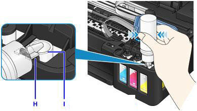 Bước 5: Rót mực vào bình mực theo thứ tự các màu, dựng đứng chai và bóp nhẹ nhàng cho đến khi hết mực trong bình theo như hình vẽ.