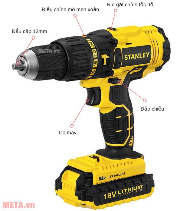 Cấu tạo của máy khoan vặn vít động lực dùng pin Stanley SCH20C2
