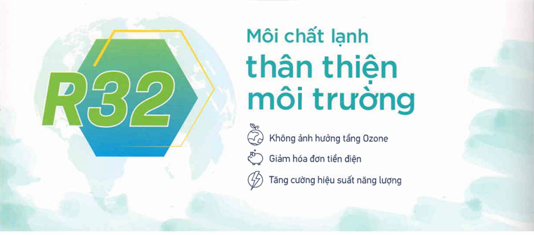 Sử dụng môi chất lạnh R32 – thân thiện với môi trường Máy lạnh LG Inverter sử dụng môi chất lạnh R32 với nhiều ưu điểm nổi bật như có thể đạt được hiệu quả làm lạnh cao hơn, làm mát sâu và tiết kiệm điện hơn, rất thân thiện với môi trường, hạn chế hiệu ứng nhà kính.