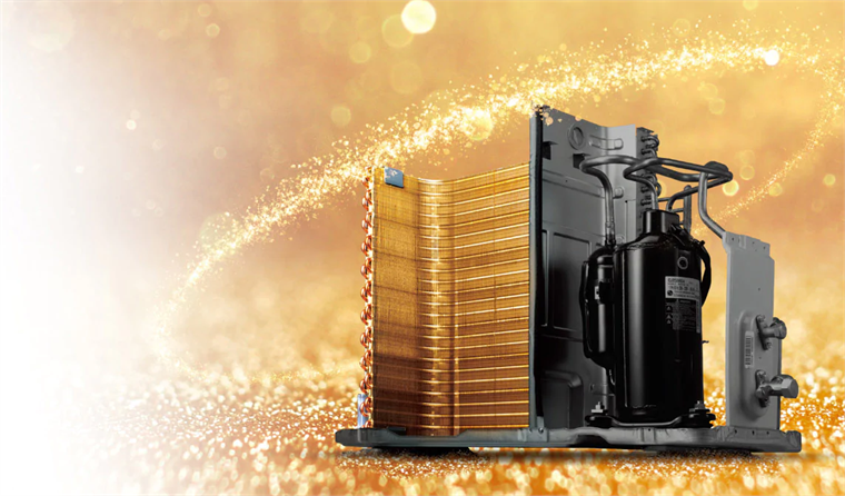 Dàn tản nhiệt ống dẫn bằng đồng, lớp phủ chống ăn mòn Gold Fin bền bỉ Nhờ dàn tản nhiệt ống dẫn bằng đồng, lớp phủ chống ăn mòn Gold Fin, bề mặt dàn tản nhiệt được bảo vệ tốt hơn, hạn chế quá trình ăn mòn, nâng cao tuổi thọ cho sản phẩm.