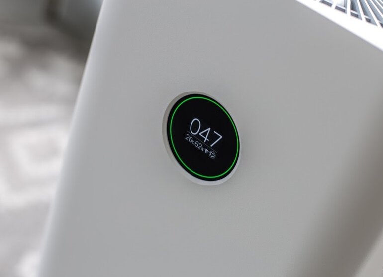Trên máy lọc khí Xiaomi Air Purifier Pro được trang bị thêm 1 màn hình OLED hình tròn để hiển thị các thông tin về chất lượng không khí trong phòng, nhiệt độ và độ ẩm không khí theo thời gian thực. Giúp cung cấp các thông tin hữu ích để người dùng tiện theo dõi. Xiaomi là một nhà sản xuất rất chú ý đến từng chi tiết trên sản phẩm của mình và rất quan tâm đến trải nghiệm của người dùng. Vì thế mà trên phần màn hình hiễn thị, nhà sản xuất đã bố trí thêm một cảm biến ánh sáng. Cho phép chiếc máy có thể nhận dạng cường độ ảnh sáng và tự động tăng giảm độ sáng cho phù hợp với môi trường. Nhất là vào ban đêm ánh sáng diệu nhẹ, sẽ ít ảnh hưởng đến giấc ngủ của người dùng.