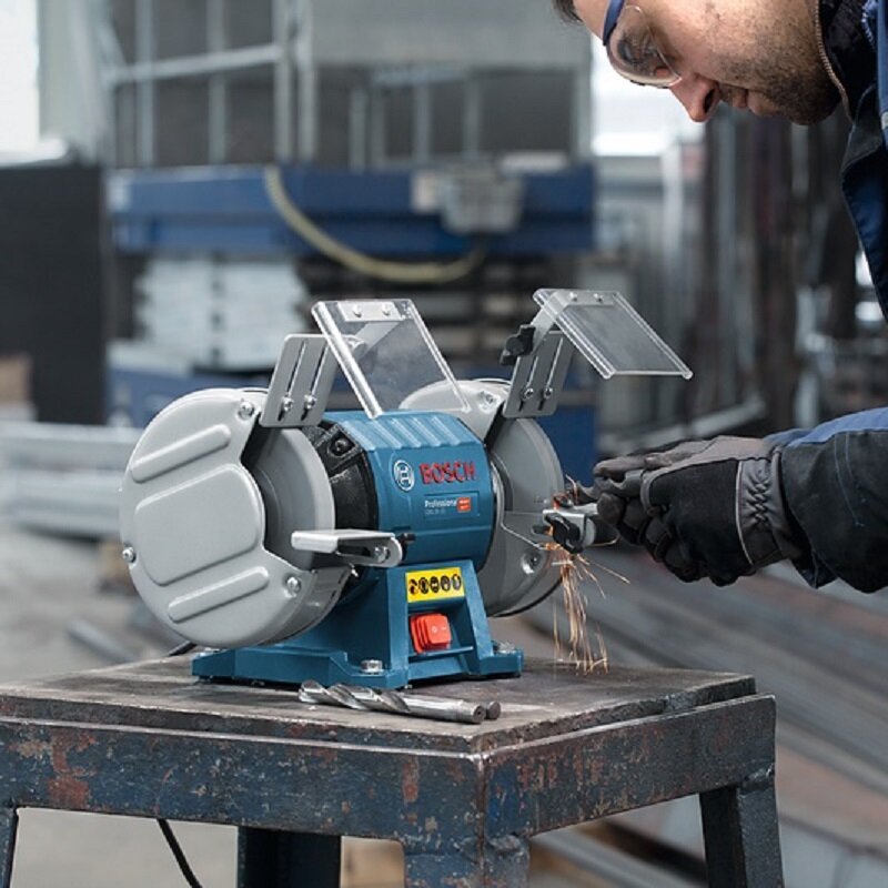 - Máy mài bàn 350 W Bosch GBG 35 – 15 thiết kế có các tấm kính bảo vệ lớn và có thể dễ dàng điều chỉnh đảm bảo công việc được thực hiện chính xác và an toàn cho người sử dụng. - Ngoài ra, máy còn được thiết kế công tắc bật / tắt chống bụi để ngăn bụi lọt vào công tắc nhằm đảm bảo tuổi thọ cho máy. - Các giá đỡ được gia công cứng cáp và có thể điều chỉnh để thực hiện công việc chính xác, chân đứng bằng chất liệu cao su để giảm độ rung, thay đá mài dễ dàng và tiện lợi giúp mang lại hiệu quả cho công việc. - Máy được làm từ hợp kim nhôm siêu bền, có khả năng chống gỉ sét và chất lượng cao, được sản xuất trên dây chuyền công nghệ hiện đại từ Đức. Do đó tuổi thọ máy cực kỳ lâu, bạn có thể sử dụng trong thời gian dài mà không lo hỏng, chống biến dạng khi va đập nên có thể làm việc được trong mọi điều kiện khắc nghiệt nhất. - Máy mài bàn 350 W Bosch GBG 35 – 15 có lớp cách điện và cách nhiệt cao nhờ đó bạn có thể làm việc trong môi trường ẩm thấp mà cũng không lo bị rò gỉ điện, vô cùng an toàn với người dùng. - Công tắc nguồn được đặt ngay thân máy nên giúp người dùng bật, mở điều khiển một cách dễ dàng. Chân máy bọc cao su rất chắc chắn nên có thể chống trơn trượt trong suốt quá trình mài nhẵn vật liệu.