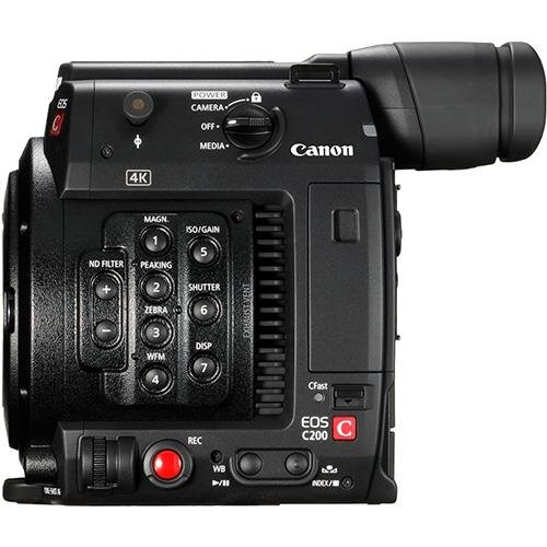 Cảm biến CMOS Super 35 mm Máy quay Canon EOS C200 được trang bị cảm biến ảnh 8.85 Megapixel Super 35mm 16:9 CMOS hỗ trợ độ phân giải 4K chuẩn (4096 x 2160 pixel). Độ nhạy sáng IOS được hỗ trợ từ 160 tới 25.600. ISO còn có thể mở rộng từ 100 tới 102.400 khi thiết đặt chế độ Extended Sensitivity trên máy quay.