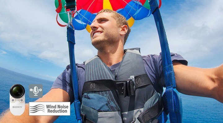 Với tính năng giảm nhiễu gió máy quay phim Sony HDR AS200VR sẽ giúp bạn thu lại âm thanh rõ ràng và chân thực với mic âm thanh nổi tích hợp.