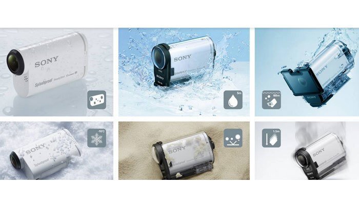 Trong những điều kiện đầy thử thách, bao chống thấm nước kèm theo máy quay phim Sony HDR AS200VR có thể giúp bạn ghi hình tốt ở độ sâu tới 5m, đồng thời phụ kiện nắp lặn tùy chọn sẽ bảo vệ máy ở độ sâu lên đến 60m. Và dĩ nhiên, máy còn chống được cát, bụi và nhiệt độ.
