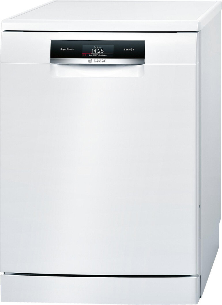 Máy rửa bát serie 8 Bosch SMS88TW02G được thiết kế với gam màu trắng sáng, kiểu dáng đứng độc lập linh hoạt. Với kiểu dáng này, người dùng có thể dễ dàng lắp đặt tại mọi vị trí trong căn bếp nhà mình, hoặc cũng có thể lựa chọn lắp âm như máy rửa chén âm tủ. Phần bề mặt của máy được gia công tỉ mỉ và chắc chắn. Riêng phần thân máy được làm bằng kim loại không chỉ đóng vai trò là người giúp việc cho mọi gia đình mà còn góp phần tôn lên được nét thẩm mỹ, hiện đại, sang trọng của Bosch SMS88TW02G.