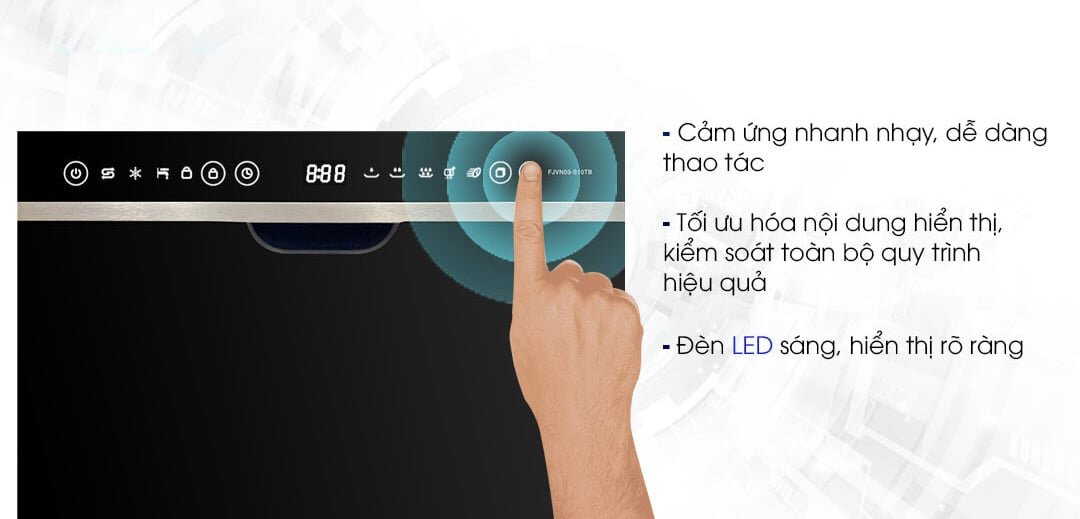 Một trong những yếu tố nổi bật của máy rửa bát cao cấp FJVN08-S10TB là bảng điều khiển được tối ưu hóa về nội dung và cách thức sử dụng, do đó chỉ cần một vài thao tác đơn giản người dùng đã có thể kiểm soát quy trình hoạt động một cách dễ dàng.