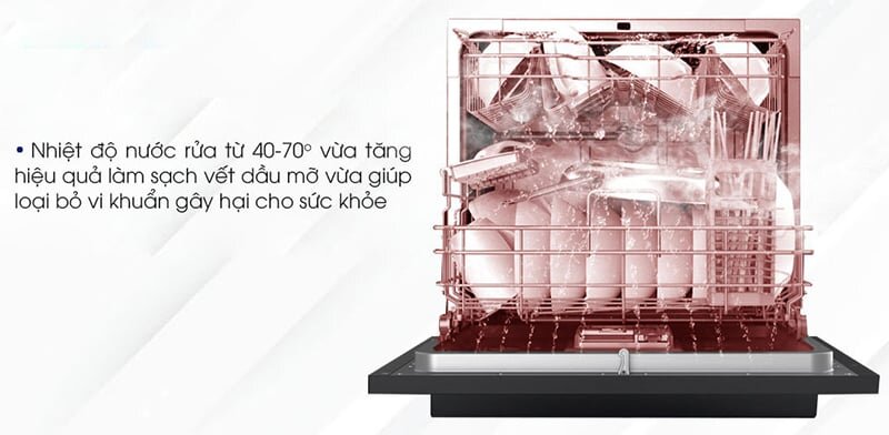 Nhiệt độ nước rửa từ 45-70 độ vừa tăng hiệu quả làm sạch vết dầu mỡ vừa giúp loại bỏ vi khuẩn gây hại cho sức khỏe.
