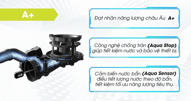 Công nghệ cảm biến AquaSensor có tác dụng cảm biến chất bẩn để điều chỉnh lượng nước và chất tẩy rửa phù hợp cho chu trình rửa.