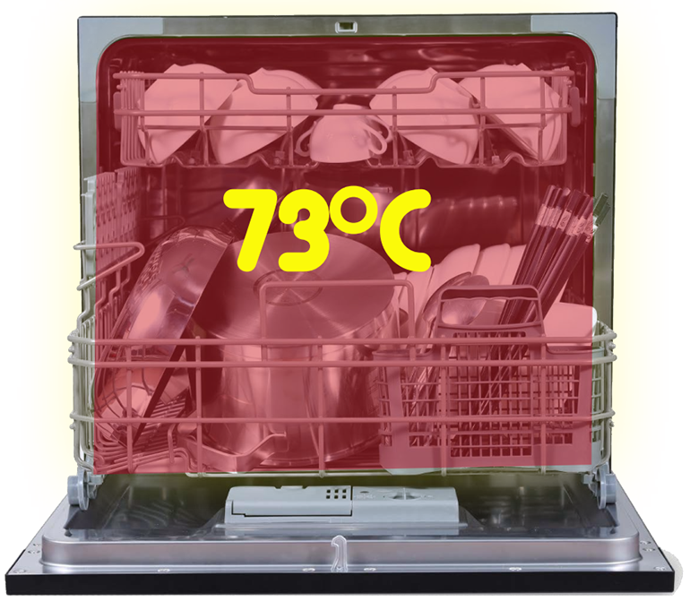 Ngoài ra, máy rửa bát còn có khả năng tự làm sạch, sấy khô và diệt khuẩn hiệu quả. Nhiệt độ của nước rửa có thể lên tới 70°C và được duy trì trong khoảng 10 phút. Nhờ vậy mà không chỉ có tác dụng làm cho bát đĩa sạch bóng mà còn có thể diệt sạch hoàn toàn vi khuẩn.