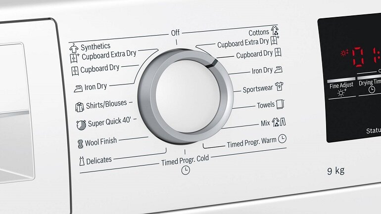 Được trang bị tới 15 chế độ sấy khô khác nhau, lý tưởng để xử lý đa dạng có loại vải, quần áo của gia đình. Các chế độ nổi bật như: Sấy siêu khô đồ cotton, sấy khô đồ cotton, sấy đồ len, sấy đồ thể thao, áo sơ mi, sấy đồ mỏng, sấy nhanh,....và một số chế độ khác.