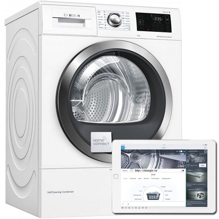 Máy sáy quần áo Bosch WTW876H8SG có khả năng kết nối với sóng Wifi cho phép người dùng dễ dàng điều khiển, kiểm soát chu trình làm việc của máy từ xa. Phù hợp với những gia đình bận rộn không có nhiều thời gian điều chỉnh máy trực tiếp tại nhà, mọi thứ đều được xử lý nhanh chóng thông qua điện thoại thông minh có kết nối Wifi