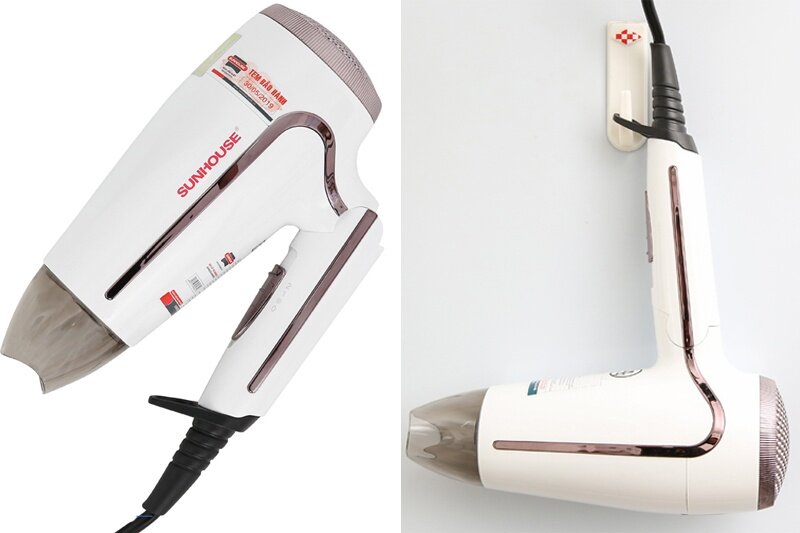 Kiểu dáng nhỏ gọn dễ dàng sử dụng Thiết kế chắc tay, hiện đại Máy sấy tóc SUNHOUSE làm từ nhựa ABS siêu bền, kháng khuẩn, chống bám bụi tốt giúp sản phẩm luôn sáng bóng như mới. Gam màu trắng tạo cảm giác tươi trẻ, sang trọng và hiện đại. Đặc biệt, máy có thiết kế đơn giản, dễ sử dụng, dễ cất trữ và có thể mang theo khi đi du lịch.