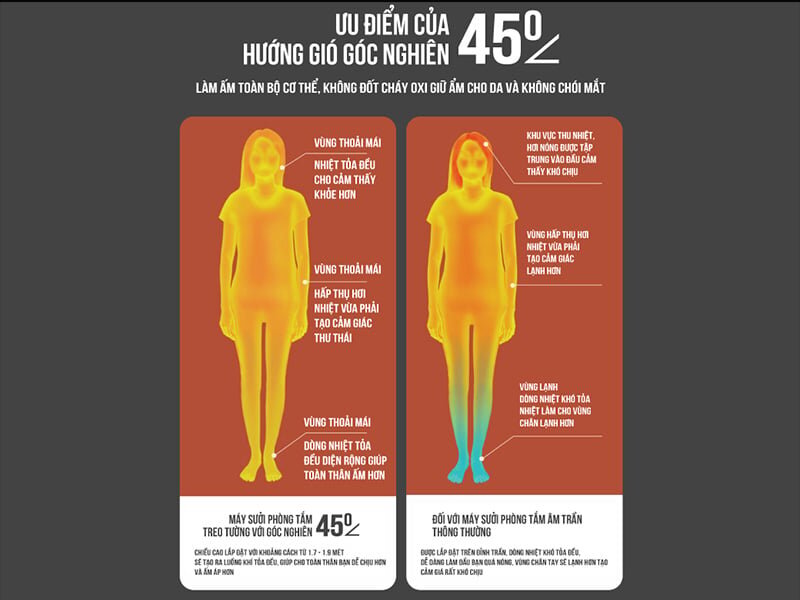 Với công nghệ sưởi không đốt cháy oxy giúp giữ ẩm không làm khô da, không chói mắt.