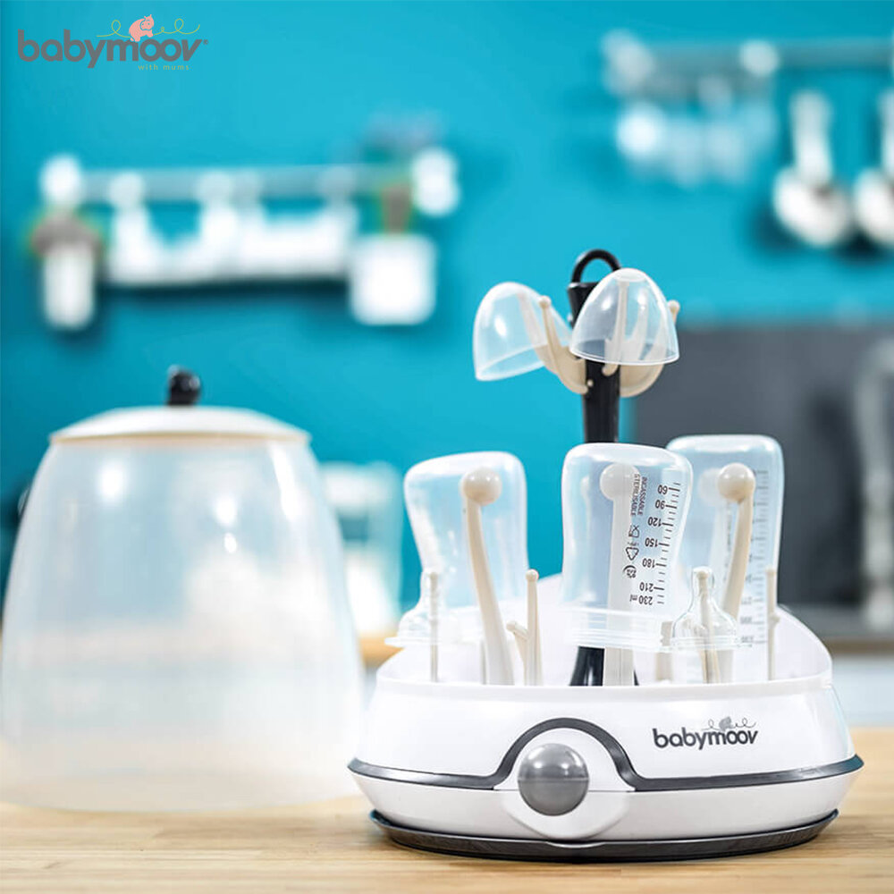 Là sản phẩm thuộc thương hiệu Babymoov, thành lập năm 1997 tại Pháp, chuyên thiết kế và sản xuất các sản phẩm chăm sóc cho mẹ và bé như máy tiệt trùng bình sữa, máy hâm sữa, nôi chơi em bé, nôi ngủ em bé, ghế ăn cho bé, máy báo khóc, túi đựng đồ cho bé cùng các sản phẩm bổ trợ cho giấc ngủ, bữa ăn của bé. Các sản phẩm của Babymoov được thiết kế đẹp mắt và sử dụng công nghệ tiên tiến đáp ứng các tiêu chuẩn của Châu Âu EN-1888 với nhiều năm liền nhận được các giải thưởng lớn tại EU và được các bà mẹ tại Pháp cũng như Châu Âu ưa chuộng và tin dùng bởi rất tiện dụng cho cả mẹ và bé.Babymoov sẽ giúp bạn có tất cả mọi thứ để chăm sóc cho bé yêu từ giấc ngủ cho đến bữa ăn, từ trong nhà cho đến khi ra ngoài. Với Máy Tiệt Trùng Bình Sữa Babymoov, các phụ kiện dùng khi bé bú bình như bình sữa, núm, ty sẽ luôn sạch sẽ, loại bỏ 100% các loại vi khuẩn, chất bẩn hay cặn bã còn lại, đảm bảo an toàn cho sức khỏe bé, mẹ an tâm hơn.