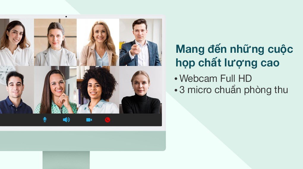 Đây là hệ thống camera tốt nhất từ trước đến nay trên iMac. Bạn sẽ có độ phân giải cao gấp đôi, cho những cuộc gọi video chất lượng hơn. Kích thước cảm biến lớn hơn cũng giúp khả năng thu sáng tốt hơn. Tự tin tham gia những cuộc họp qua video với hình ảnh sắc nét.
