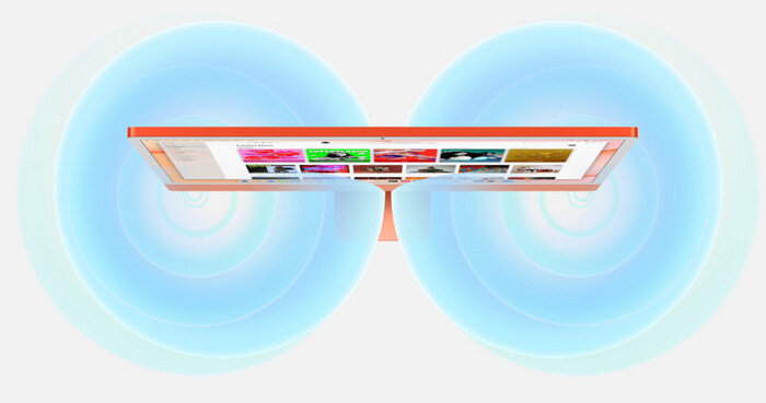 Camera FaceTime 1080p lần đầu tiên xuất hiện trên máy Mac với khả năng giảm nhiễu tốt hơn, dải động lớn hơn, cân bằng trắng tự động và 3 micro chất lượng phòng thu giúp thu giọng nói rõ ràng hơn, loại bỏ tiếng ồn tối ưu hỗ trợ tốt cho các buổi học trực tuyến hay họp với đối tác từ xa.