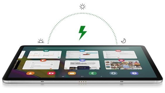 Mang trên mình viên pin dung lượng cực lớn 7.040 mAh, Galaxy Tab S5e cho phép bạn xem phim tới 15 giờ chỉ sau một lần sạc đầy. Hơn nữa, chiếc máy tính bảng của chúng ta còn có sạc nhanh, nhanh chóng nạp năng lượng, luôn luôn sẵn sàng cho mọi hoạt động.