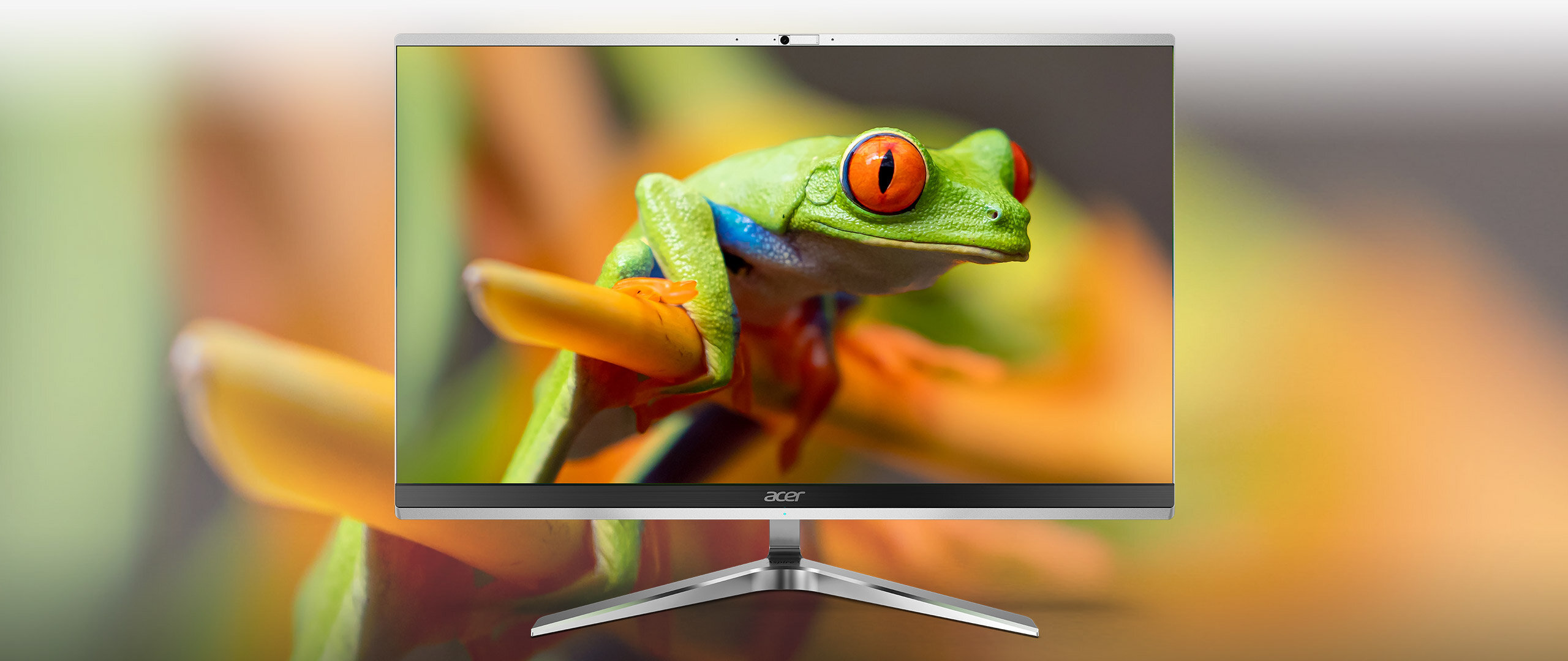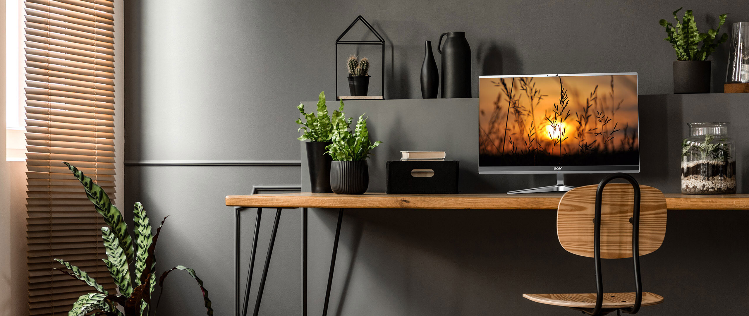 Dù được đặt ở đâu trong nhà, chiếc máy tính để bàn All-In-One có kiểu dáng trang nhã này sẽ phù hợp mọi cách bài trí. Cáp được quản lý dễ dàng thông qua một kẹp tiện lợi trên giá đỡ trong khi thiết kế siêu mỏng giúp giải phóng thêm không gian của bàn. Giải phóng thêm diện tích bằng cách lắp VESA1 vào PC.