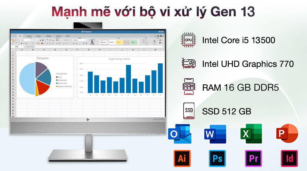 Thông số kĩ thuật Máy tính để bàn All in one HP Eliteone 870 G9 8W8M1PA - Intel Core i5-13500, RAM 16GB, SSD 512GB, Intel UHD Graphics 770, 27 inch