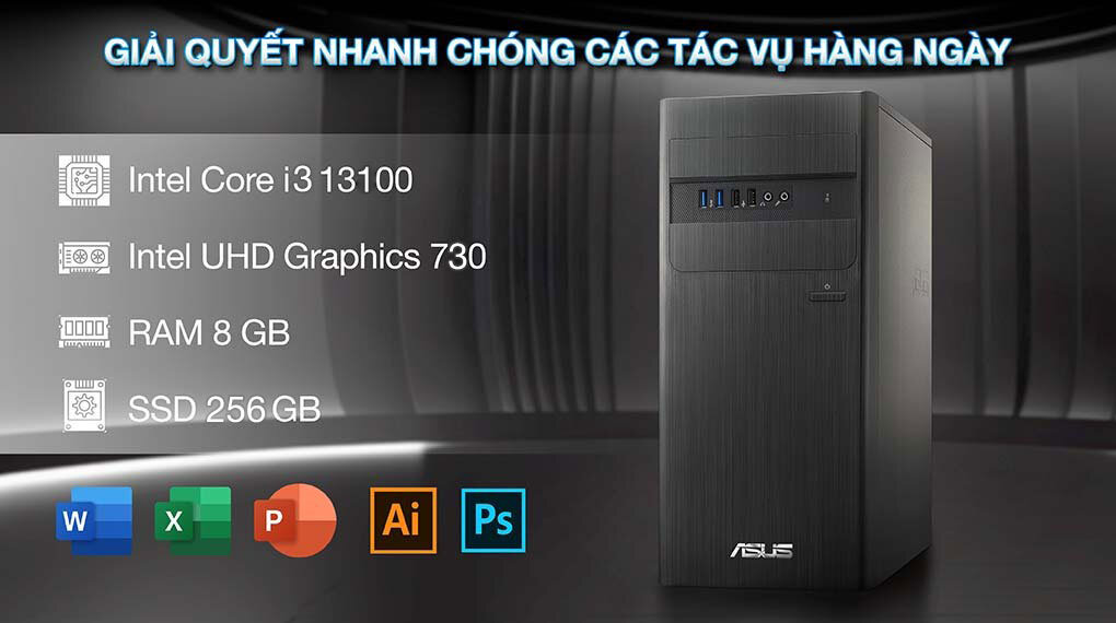 Thông số kĩ thuật Máy tính để bàn Asus D500ME-313100037W - Intel Core i3-13100, RAM 8GB, SSD 512GB, Intel UHD Graphics 730