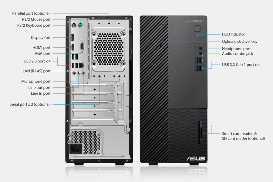 Asus D500MA có đầy đủ các cổng I/O, sẵn sàng kết nối với nhiều loại thiết bị ngoại vi trong doanh nghiệp.