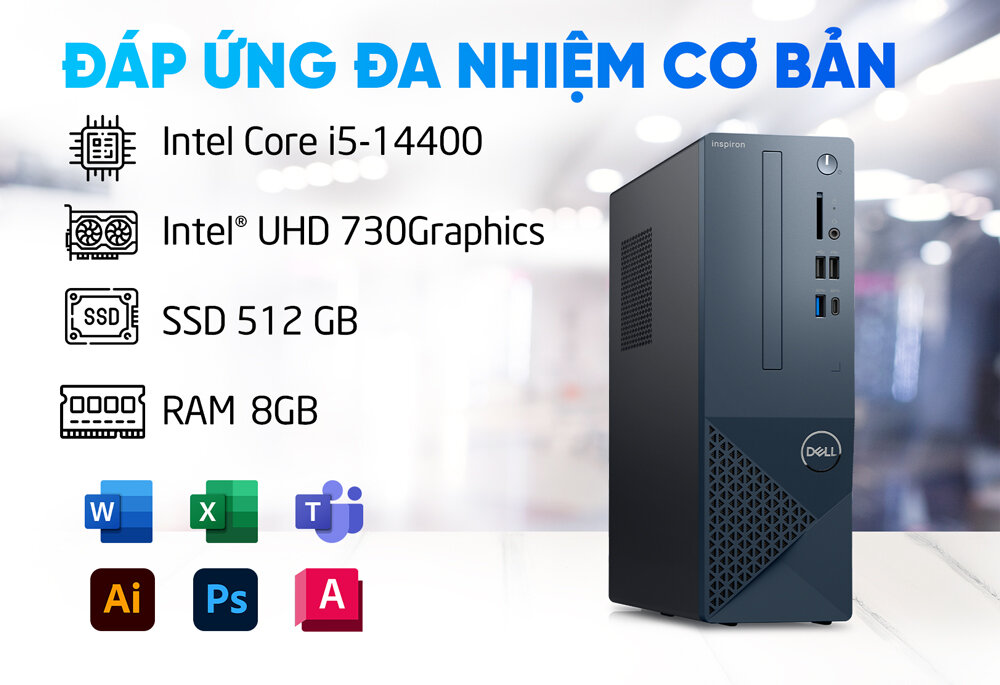 Thông số kĩ thuật Máy tính để bàn Dell Inspiron 3030 SFF 42IN3030S14400 - Intel Core i5-14400, RAM 8GB, SSD 512GB, Intel UHD Graphics 730