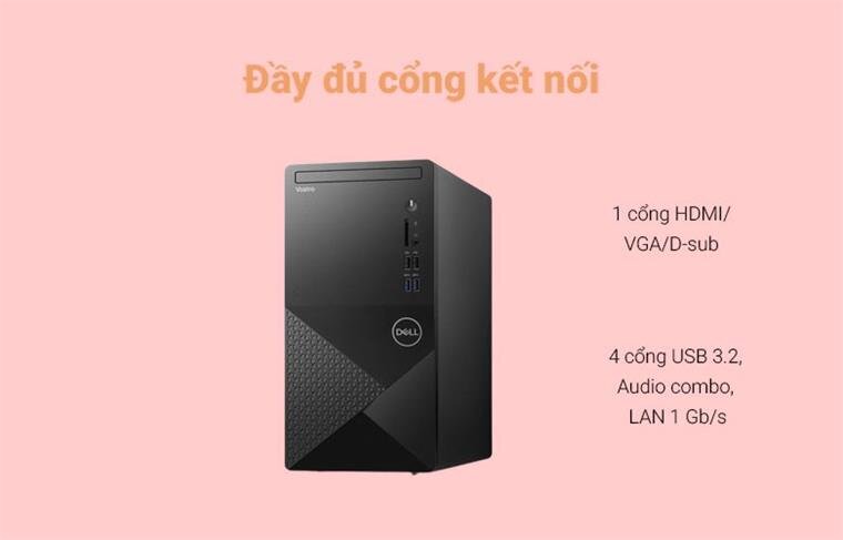 Bên cạnh đó, bộ PC còn được hỗ trợ thêm các cổng kết nối, như: 4 cổng USB 3.2, Audio combo, LAN 1 Gb/s, cổng xuất hình gồm 1 cổng HDMI, 1 cổng VGA/D-sub,.. mang đến sự tiện lợi trong kết nối với các thiết bị ngoại vi khác.