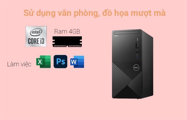Giới thiệu: PC Dell Vos 3888(70226499)i3-10100/4GB/1TB/Win10/K+M/Wifi ac,1YW