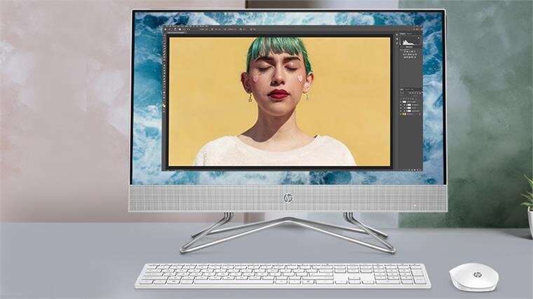 Bàn phím, chuột tinh tế và đồng bộ Thông thường để có một chiếc máy tính để bàn, bạn sẽ phải mua màn hình, case, bàn phím, chuột. Tuy nhiên HP 24-df1030d không chỉ tích hợp tất cả trong một vào màn hình gọn gàng, mà còn đi kèm bàn phím và chuột đồng bộ màu trắng đẹp mắt. Cả bàn phím và chuột đều thiết kế theo cùng ngôn ngữ của máy, giúp bạn vừa làm việc tốt, lại vừa có những phụ kiện thời trang.