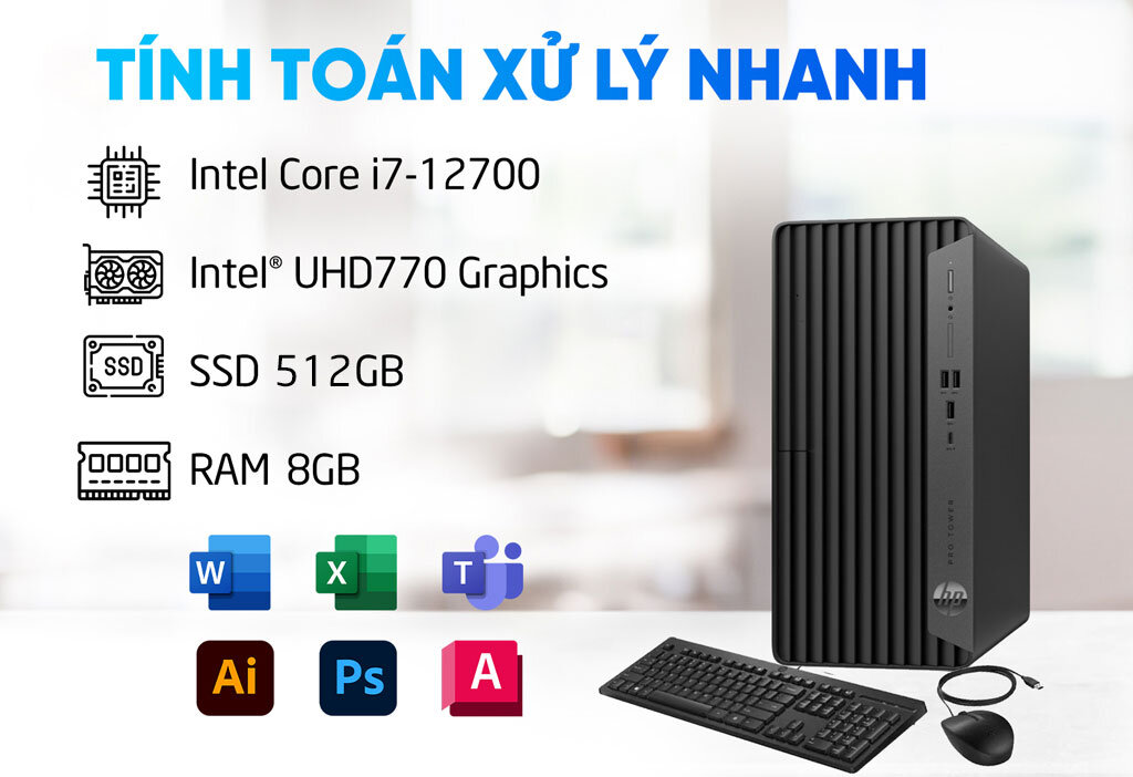 Thông số kĩ thuật Máy tính để bàn HP Pro Tower 400 G9 9E819PT - Intel Core i7-12700, RAM 8GB, SSD 512GB, Intel UHD Graphics 770