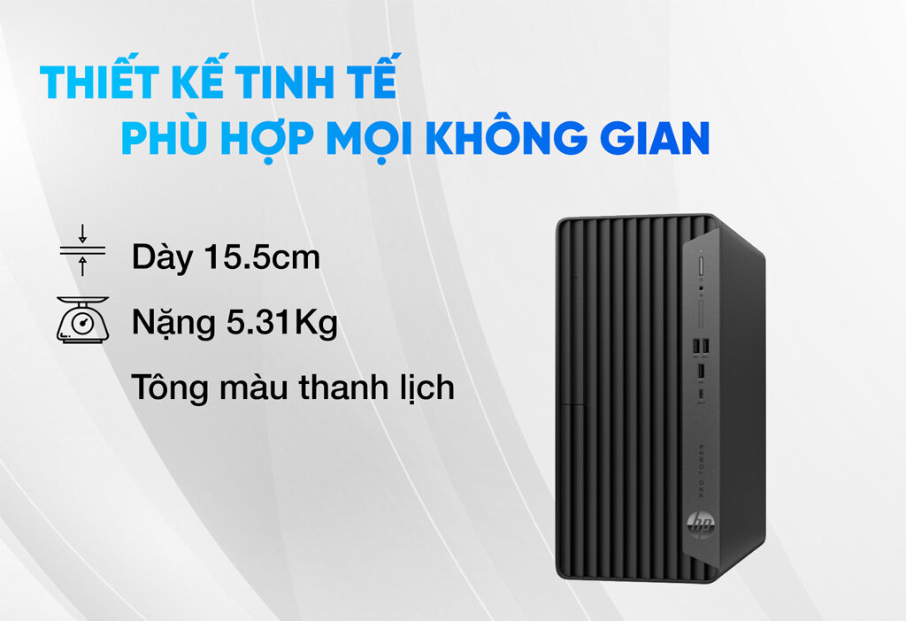 PC HP Prodesk 400 G9 MT cũng phải trải qua hàng loạt bài thử nghiệm nghiêm ngặt tương tự như những sản phẩm khác cùng hãng: về độ ồn, độ rung, thả rơi và sốc nhiệt. Điều này để có thể đáp ứng những tiêu chuẩn khắt khe và vượt xa những tiêu chuẩn của các nhà sản xuất khác. Độ dày chỉ 15.5 cm và cân nặng khiêm tốn 5.31 Kg dễ dàng cho người dùng hay phải xê dịch, di chuyển chỗ làm.