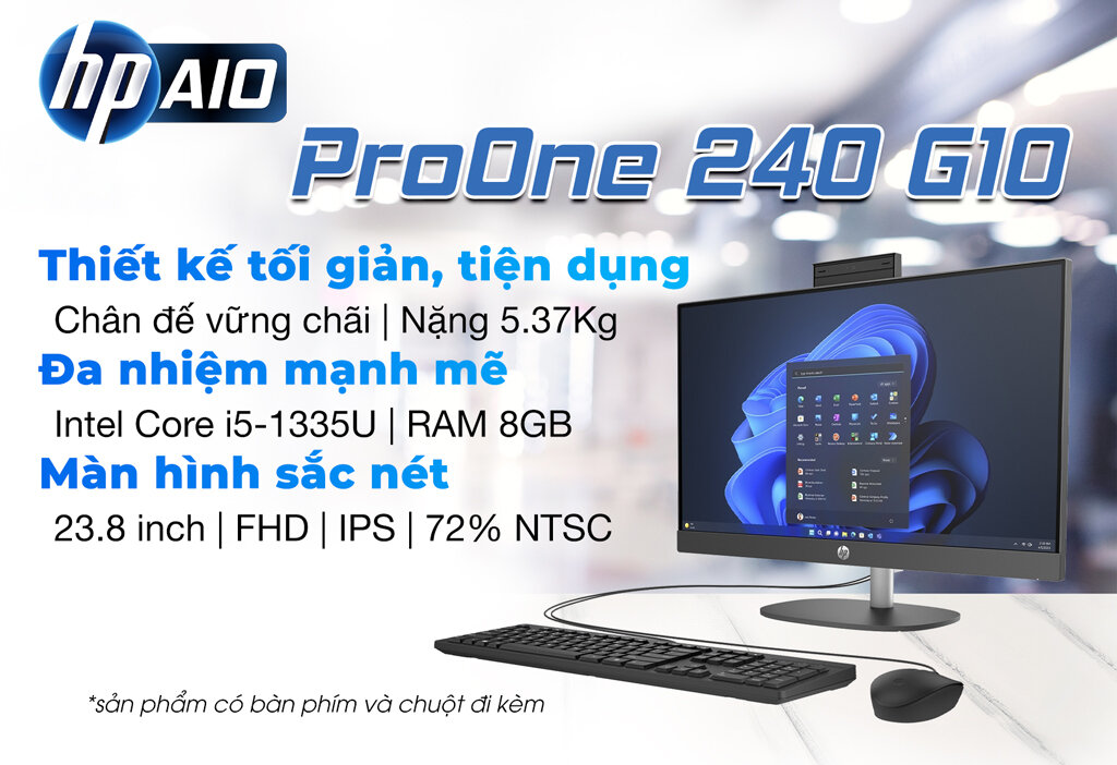 Thông số kĩ thuật Máy tính để bàn HP ProOne 240 G10 9H0A9PT - Intel Core i5-1335U, RAM 8GB, SSD 256GB, Intel Iris Xe Graphics, 23.8 inch