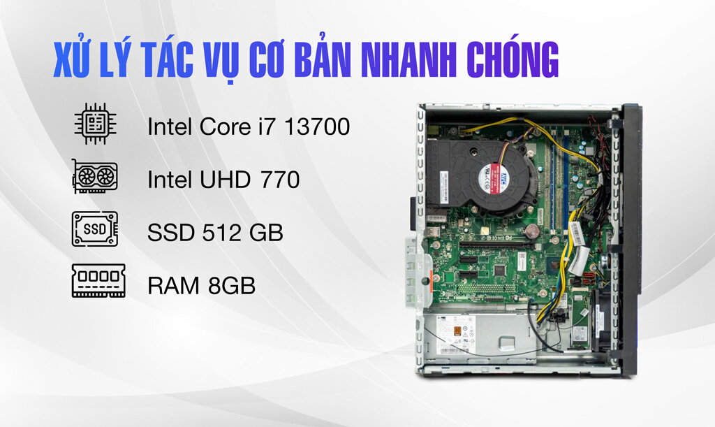 ThinkCentre neo 50t Gen 4 được trang bị bộ vi xử lý Intel® Core™ i7 13700. Là sự kết hợp giữa hiệu năng và hiệu quả, cho phép xử lý mọi tác vụ mượt mà. Tốc độ đọc/ghi dữ liệu siêu nhanh đến từ ổ cứng SSD bên trong, mang lại hiệu suất làm việc, xử lý các tác vụ một cách mượt mà, trơn tru nhất. Bộ nhớ trong 8GB RAM đem lại thao tác đa nhiệm vừa đủ với nhu cầu phổ thông đến tầm trung.