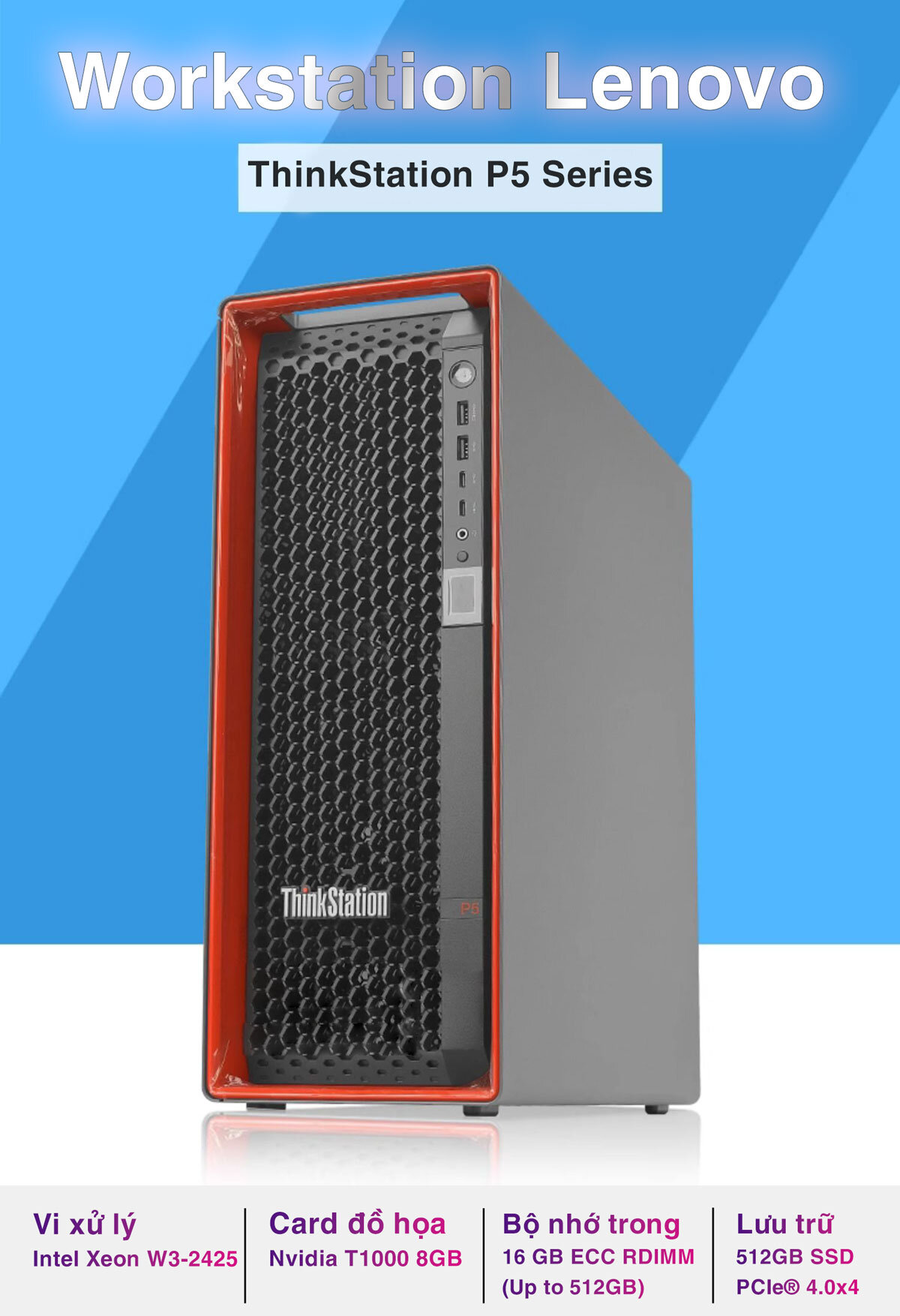 Thông số kĩ thuật Máy tính để bàn Lenovo Thinkstation P5 30GA003EVA - Intel Xeon w3-2425, 16GB RAM, SSD 512GB, Nvidia T1000 8GB